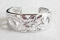 ハワイアンジュエリーの定番、トロピカルデザインが施されたシルバートーリングです。