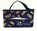 ゴールドのパイナップルが飛び交う、お洒落なデザインのティッシュペーパーケース。お部屋だけでなく、車の中でも使える便利なアイテムです。ストラップの取り外しが可能となっており、縦と横どちらでもお使いいただけます。