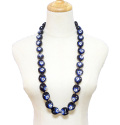 ククイナッツを1つ1つ丁寧に磨き上げ、職人により編み込まれた上質なブラックククイナッツに、ネイビーブルーハイビスカスがデザインされたレイです。当店のククイナッツレイは、納品前に1本1本、目視で確認をし、お客様がご満足頂ける様な、綺麗な商品の発送を心掛けております。長さは、約91cmから95cmとなっております。(紐を除くククイナッツ部分の長さです)