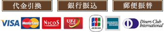 クレジットカード・代金引換・銀行振込・郵便振込等。